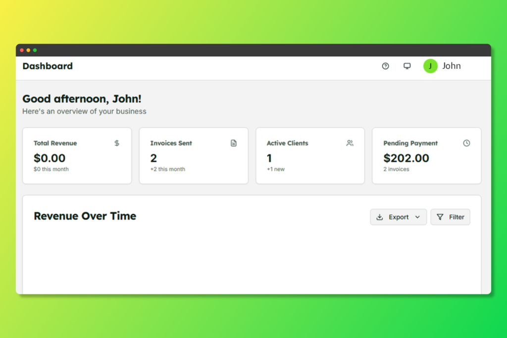 • Total Revenue: Your total earnings from paid invoices