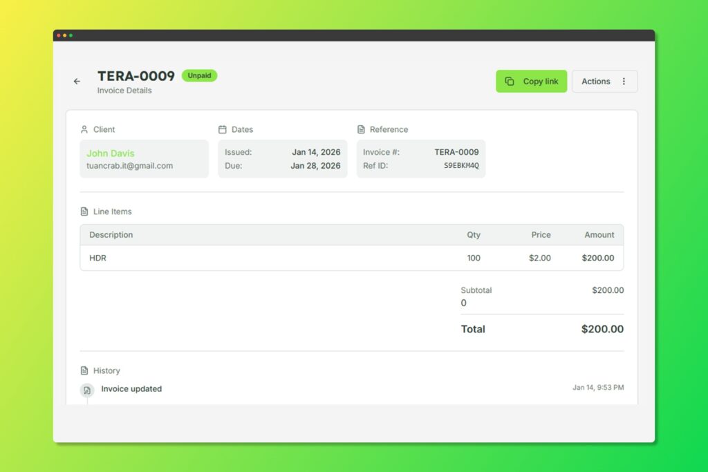 Every invoice has a unique, secure shareable link: